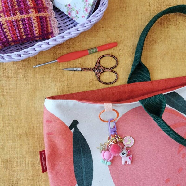 Of haak een progress keeper door de laatste steek van je haakwerk, zo verlies je geen steken. Je kunt ze ook aan je sleutelhanger hangen of aan de runner van de rits van je tas. Staat zo gezellig!
