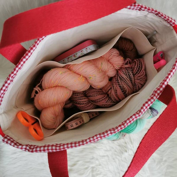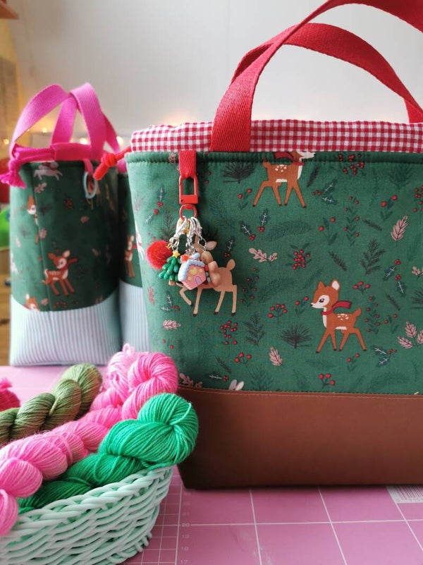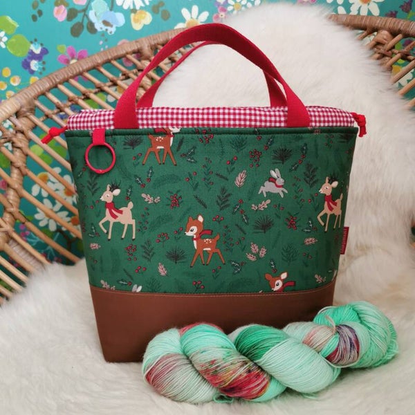Deze handgemaakte project bag is perfect voor grotere haak- of breiwerken. Met ruimte voor ca. 700-750 gram wol biedt hij volop plek voor grotere projecten zoals truitjes, sjaals of heb begin van een nieuwe deken. Of start een Christmas in July breiwerk! Heb je de "O dennenboom sokken" van Mirjam Molenbeek al gezien? Het perfecte zomervakantie handwerkje!