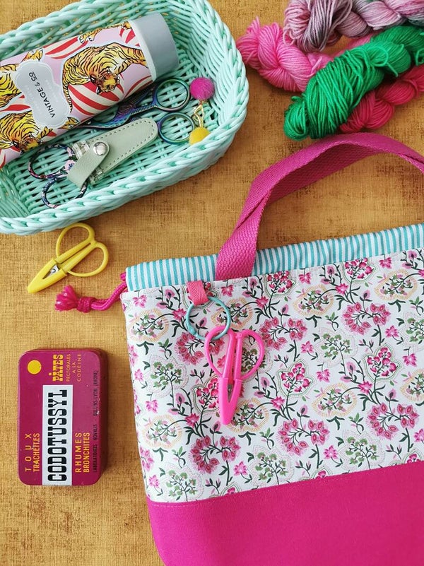 Deze handgemaakte project bag is perfect voor grotere haak- of breiwerken. Met ruimte voor ca. 700-750 gram wol biedt hij volop plek voor grotere projecten zoals truitjes, sjaals of het begin van een nieuwe deken.