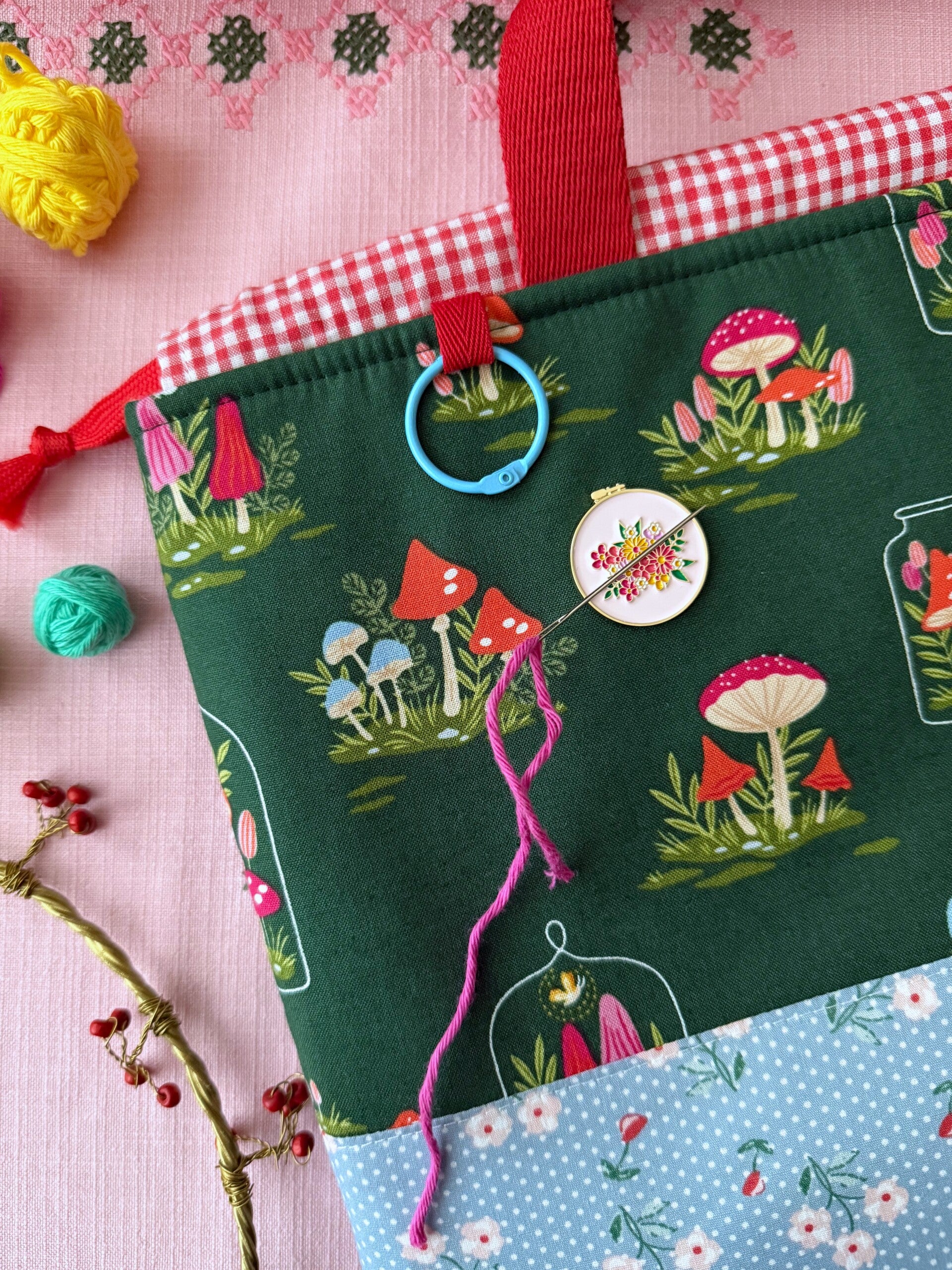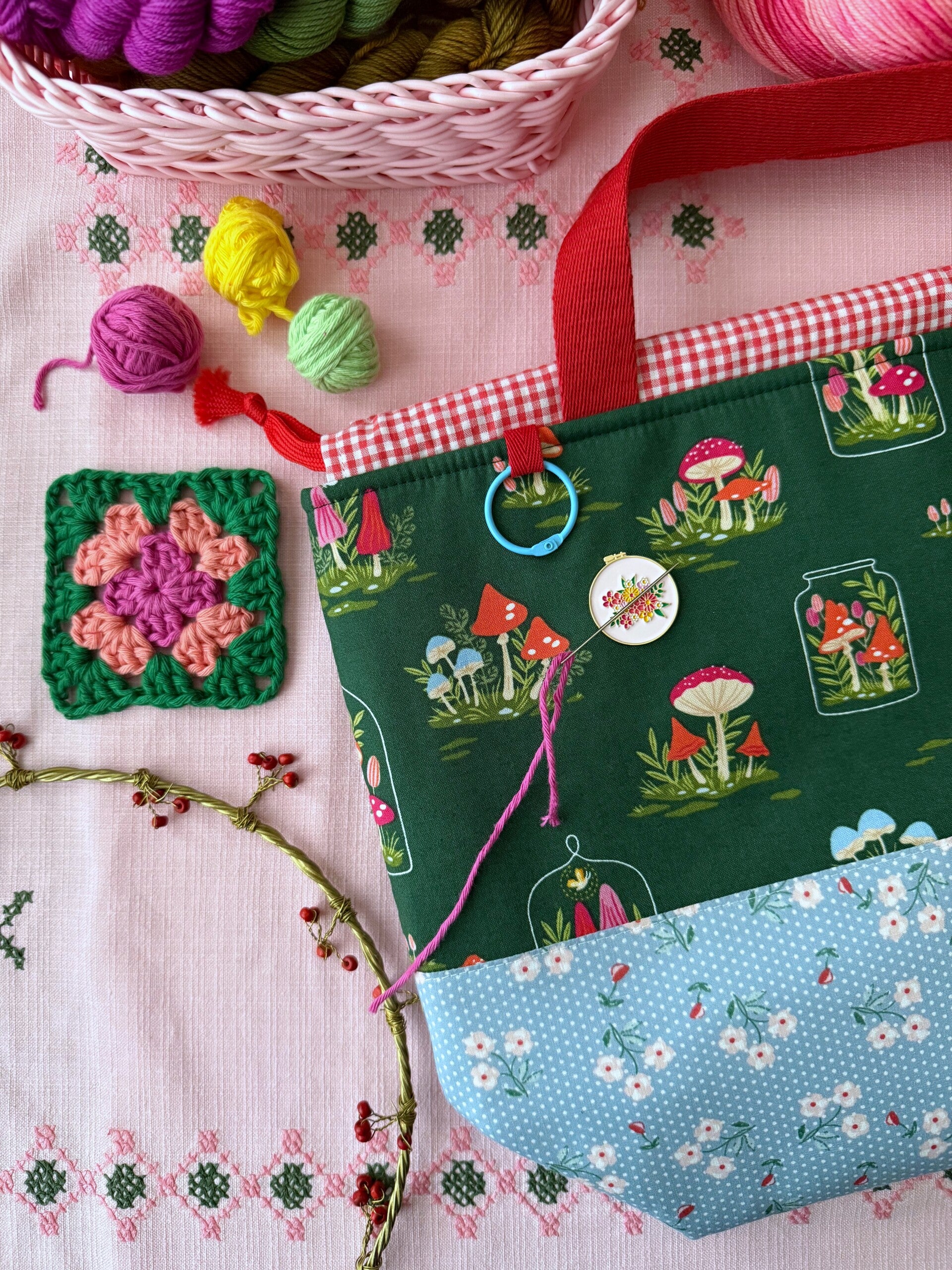 Deze handgemaakte, ruime project bag XL is perfect om je grote haak- of breiwerk veilig en overzichtelijk in op te bergen. Er past tot wel 1000 gram (een kilo!) wol in – ideaal voor truien of andere grotere projecten.