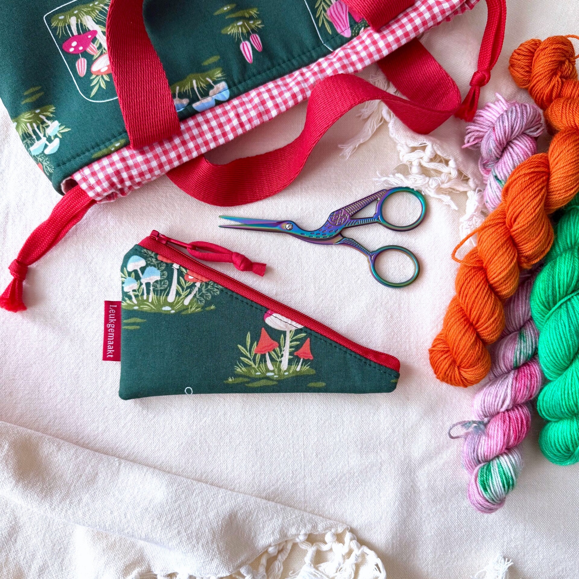 Er zijn meerdere kleuren etuitjes op voorraad. Zo kun je altijd een variant kiezen die matcht met jouw project bag of handwerkspullen.