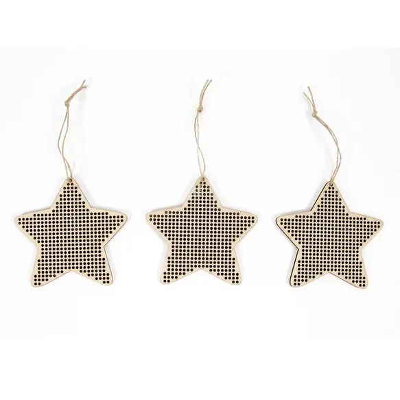 - 3 x houten ornament van 8,1 x 8,4cm in de vorm van een ster