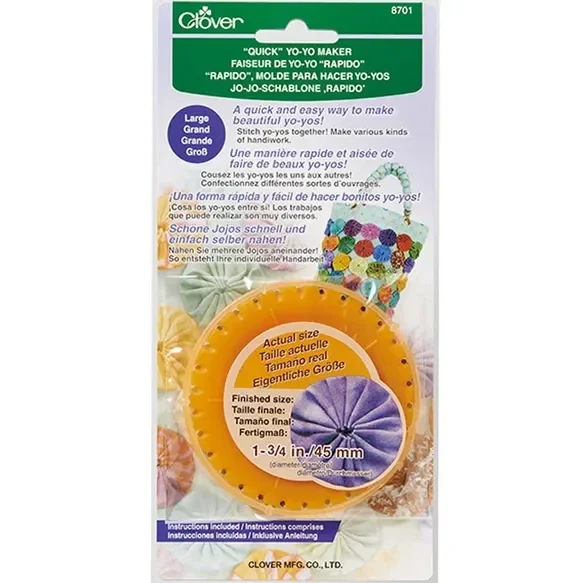 Met de Quick Yo-Yo Makers van Clover maak je in een handomdraai vrolijke yo-yo’s (stoffen rozetten). Deze handige malletjes besparen je veel tijd: je hoeft geen cirkels meer uit te tekenen, de rijgsteken krijgen automatisch een gelijkmatige naadtoeslag en elke yo-yo wordt netjes rond.