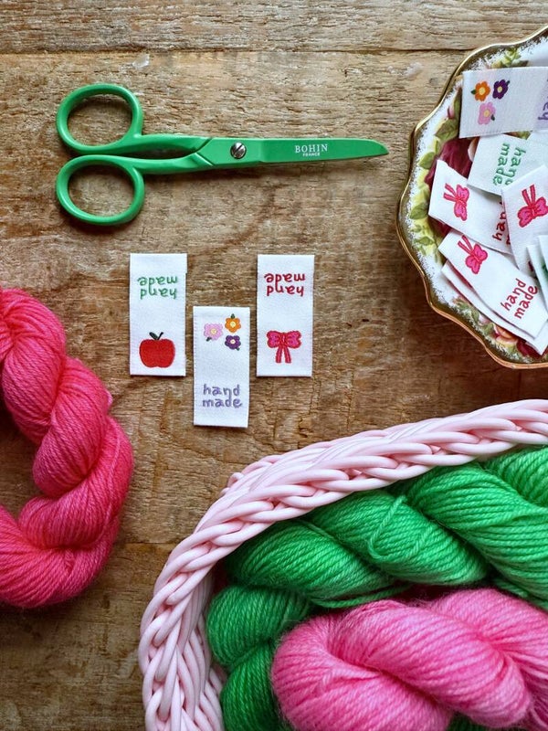 Met deze geweven kledinglabels geef je je handwerk een mooie, persoonlijke afwerking. Ideaal voor zelfgemaakte kleding, accessoires of handwerkprojecten. Je kunt de labels met de naaimachine of met de hand vastnaaien. Ze zijn leuk om dubbel te vouwen en mee te stikken in een zijnaad.