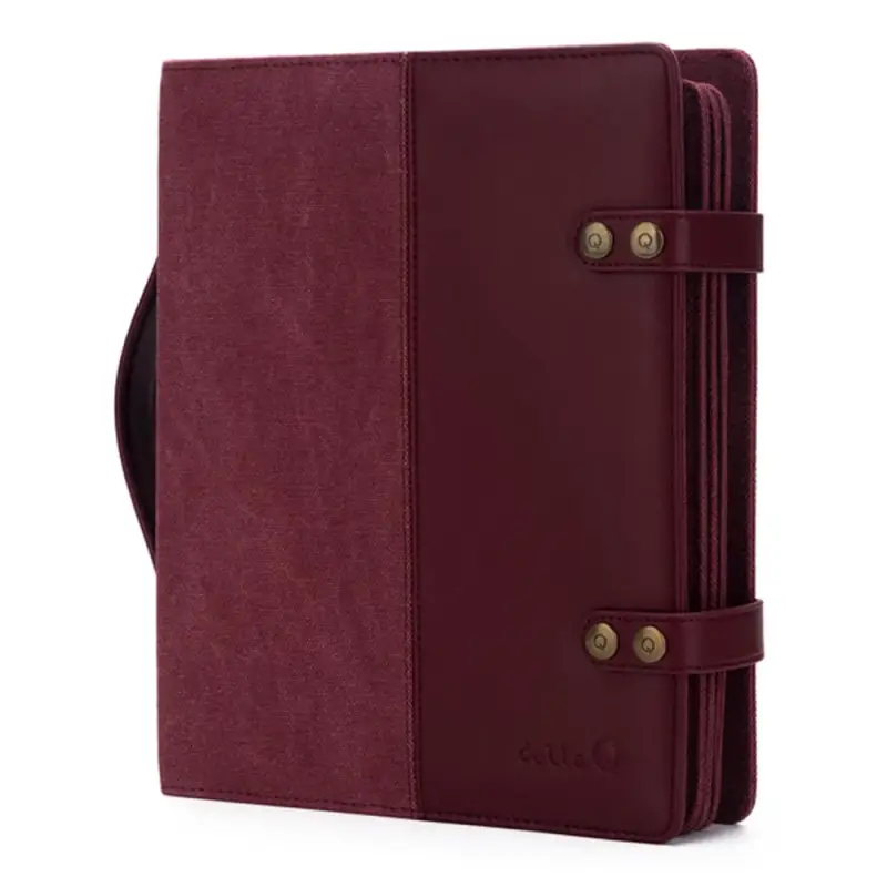 De bladen zijn voorzien van steekvakken voor (verwisselbare) brei- en haaknaalden, rondbreinaalden en ritsvakken voor kleine handwerkbenodigdheden. Alles heeft een vaste plek, waardoor je nooit meer hoeft te zoeken. De rug van het boek is uitgerust met een kunstleren handvat, zodat je het eenvoudig meeneemt als een compacte aktetas.